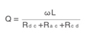 ![]() | Q:品質(zhì)因數(shù) quality factor L:電感量(H)inductance(henries) ω:2πf(Hz)2π frequency(hertz) Rdc:繞線直流電阻(Ω)DC winding resistance(ohms) Rac:由于磁粉芯損耗而產(chǎn)生的阻抗(Ω)resistance due to core loss(ohms) Rcd:由于繞線中介電損耗而產(chǎn)生的阻抗(Ω)resistance due to winding dielectric loss(ohms) |