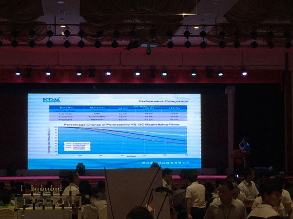 2015年5月29日,電子變壓器、電感器行業(yè)技術(shù)峰會——“第四屆自動化生產(chǎn)暨高性能磁性材料技術(shù)研討會”在東莞嘉輝會酒店盛大召開。我司市場拓展部的同事也參加了此次研討會并在現(xiàn)場進(jìn)行了展示,Alan發(fā)表了有關(guān)應(yīng)用于電源的新一代金屬磁粉芯的演講。