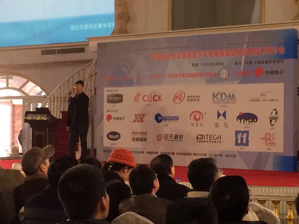2015年1月9日,由我司香港辦技術(shù)銷售經(jīng)理Alan帶領(lǐng)的團(tuán)隊(duì)一行五人參加由大比特資訊公司在上海舉辦的第四屆光伏逆變器暨汽車充電樁磁組件應(yīng)用技術(shù)研討會(huì)。會(huì)議主要圍繞“光伏逆變器、汽車充電樁熱點(diǎn)話題”進(jìn)行技術(shù)上的交流。我司作為國(guó)內(nèi)具有規(guī)模的軟磁金屬磁粉芯制造商,Alan代表整個(gè)公司向與會(huì)人員介紹了科達(dá)的新一代金屬磁粉芯及公司的新發(fā)展動(dòng)態(tài),獲得了在場(chǎng)專家及工程師的一致認(rèn)可及好評(píng)。整個(gè)會(huì)議其間,我司在指定區(qū)域進(jìn)行了產(chǎn)品展示,讓更多人了解我們的產(chǎn)品,與我工作人員進(jìn)行當(dāng)面溝通與交流。